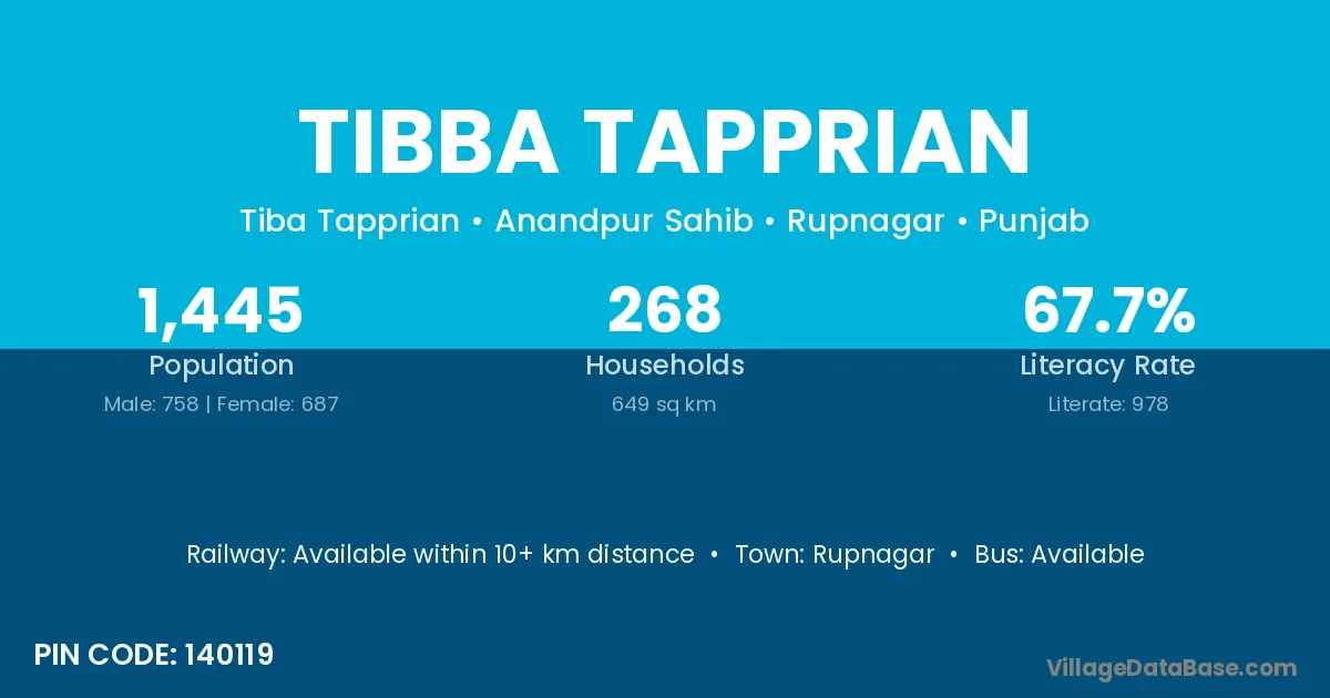Rupnagar is the nearest town to Tibba Tapprian village for major economic activities