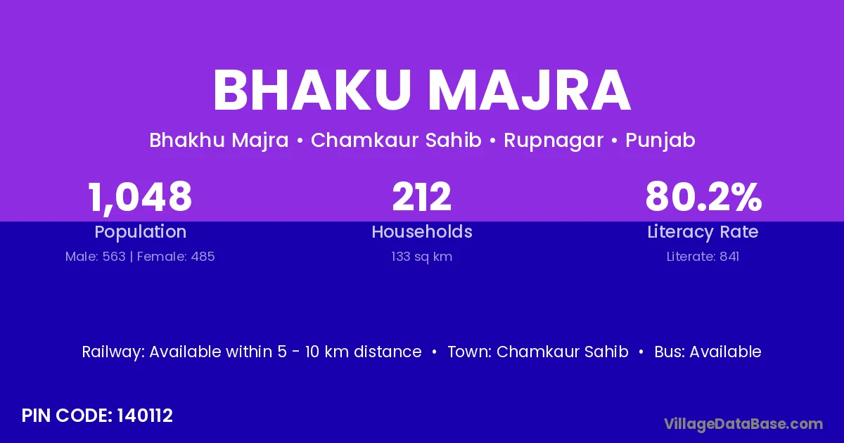 Bhaku Majra village has a total population of 1,048 people, of which 563 are males and 485 are females.