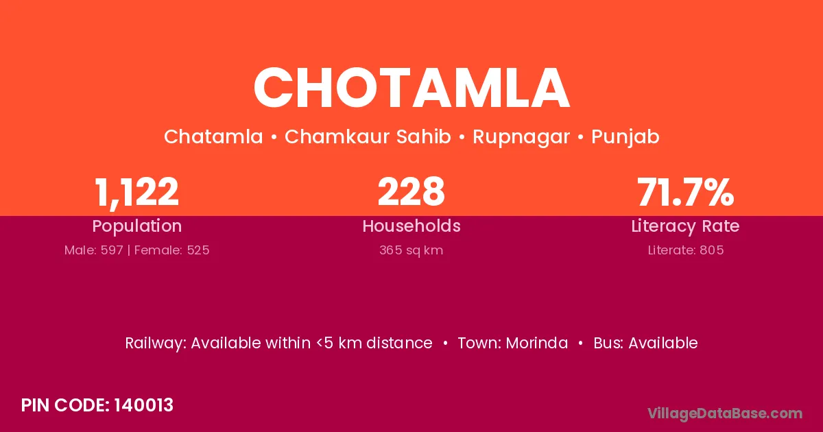 Chotamla village has a total population of 1,122 people, of which 597 are males and 525 are females.