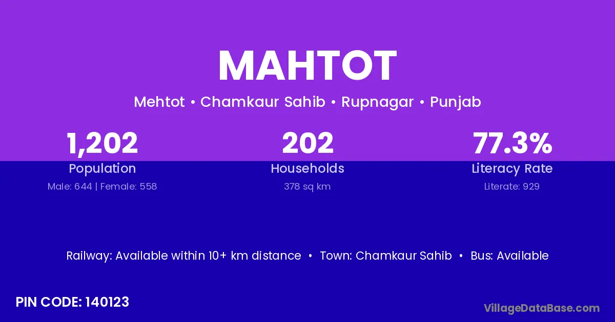 Chamkaur Sahib is the nearest town to Mahtot village for major economic activities