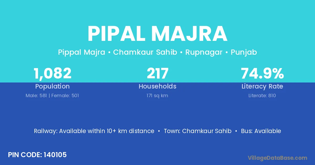Chamkaur Sahib is the nearest town to Pipal Majra village for major economic activities
