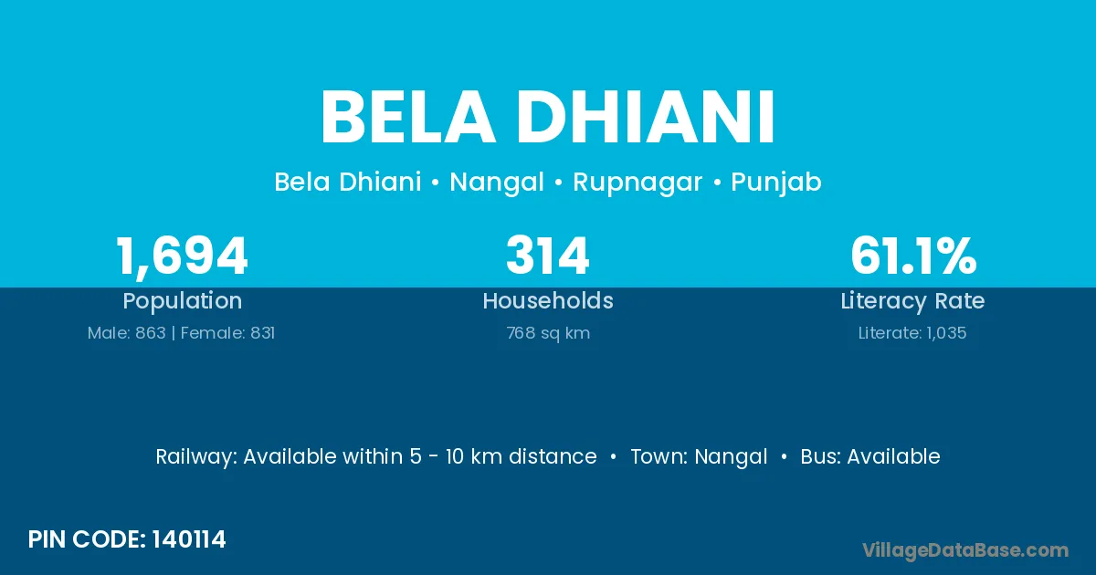 Nangal is the nearest town to Bela Dhiani village for major economic activities