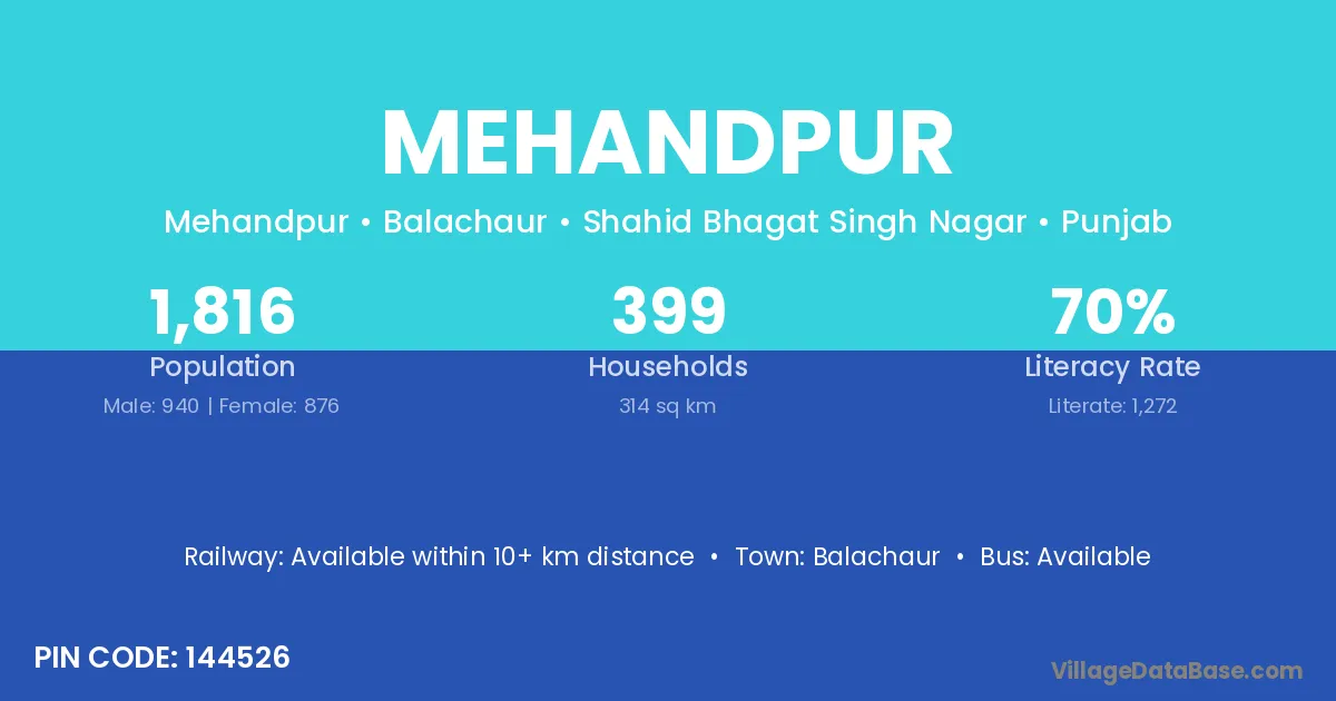 Nangal is the nearest town to Mehandpur village for major economic activities