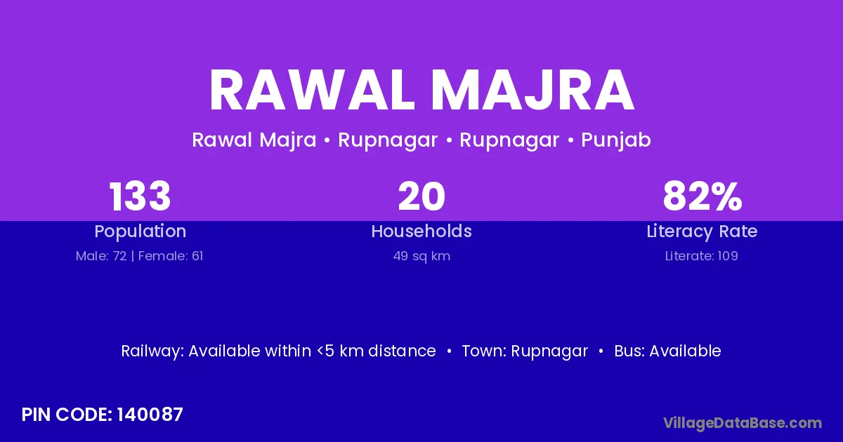 Rawal Majra village has a total population of 133 people, of which 72 are males and 61 are females.