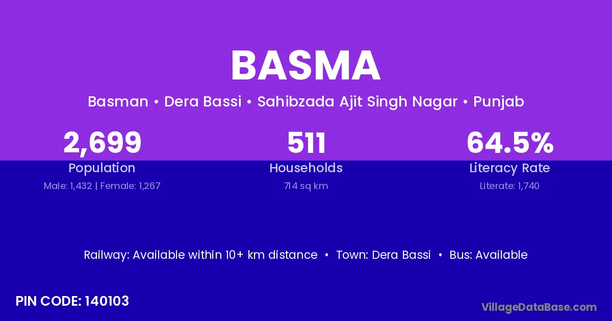 Dera Bassi is the nearest town to Basma village for major economic activities