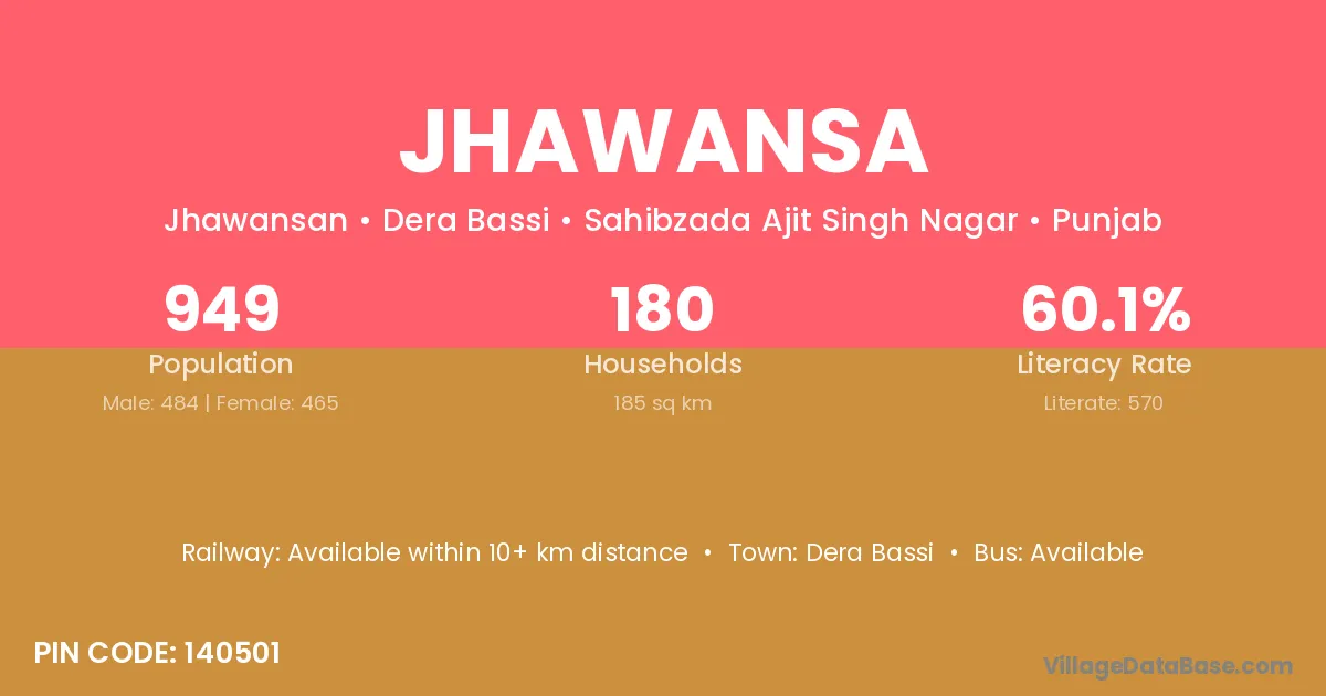 Jhawansa village has a total population of 949 people, of which 484 are males and 465 are females.
