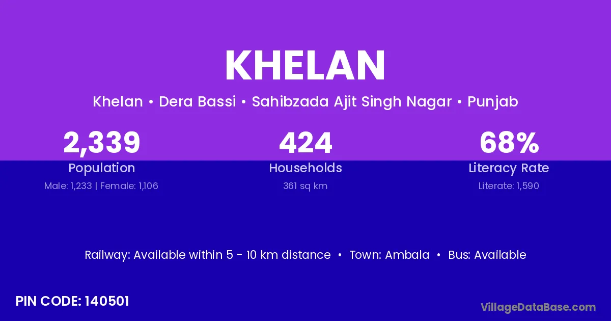 Ambala is the nearest town to Khelan village for major economic activities