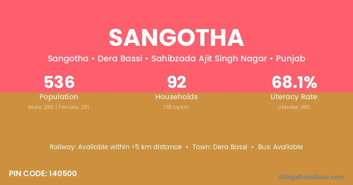 Dera Bassi is the nearest town to Sangotha village for major economic activities