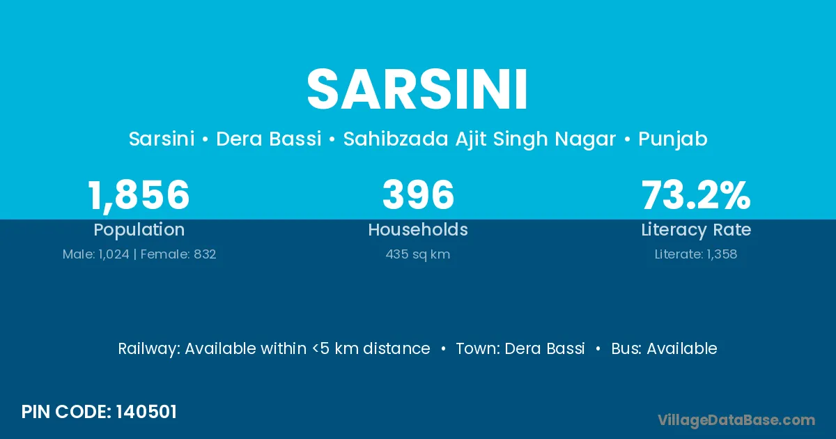 Dera Bassi is the nearest town to Sarsini village for major economic activities