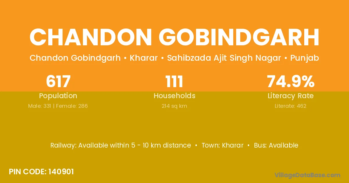 Kharar is the nearest town to Chandon Gobindgarh village for major economic activities