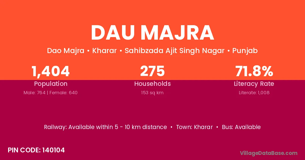 Kharar is the nearest town to Dau Majra village for major economic activities