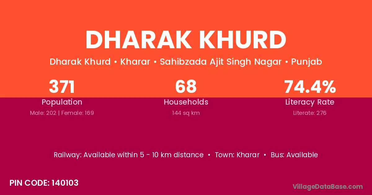 Kharar is the nearest town to Dharak Khurd village for major economic activities