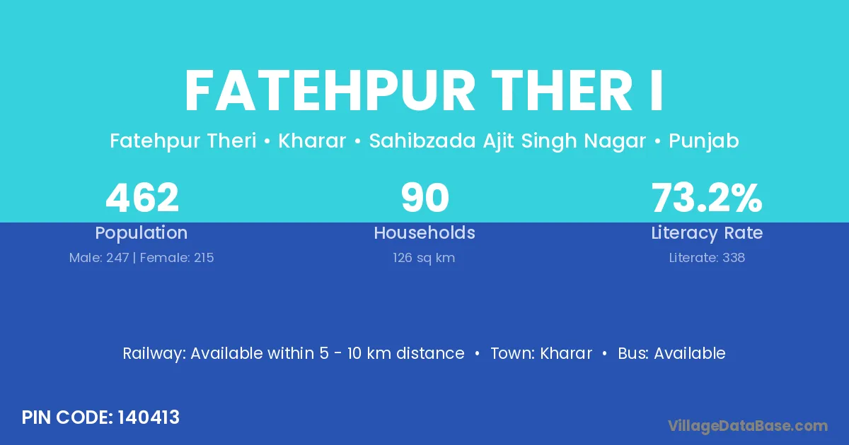Fatehpur Ther I village has a total population of 462 people, of which 247 are males and 215 are females.