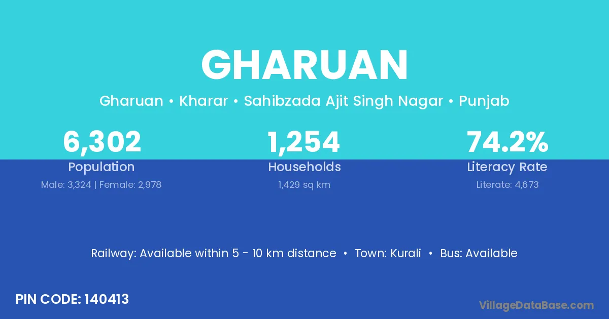 Kurali is the nearest town to Gharuan village for major economic activities