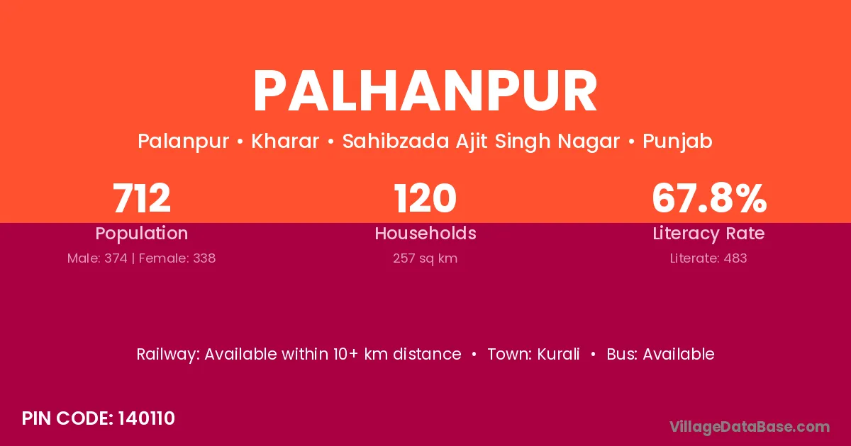 Palhanpur village has a total population of 712 people, of which 374 are males and 338 are females.