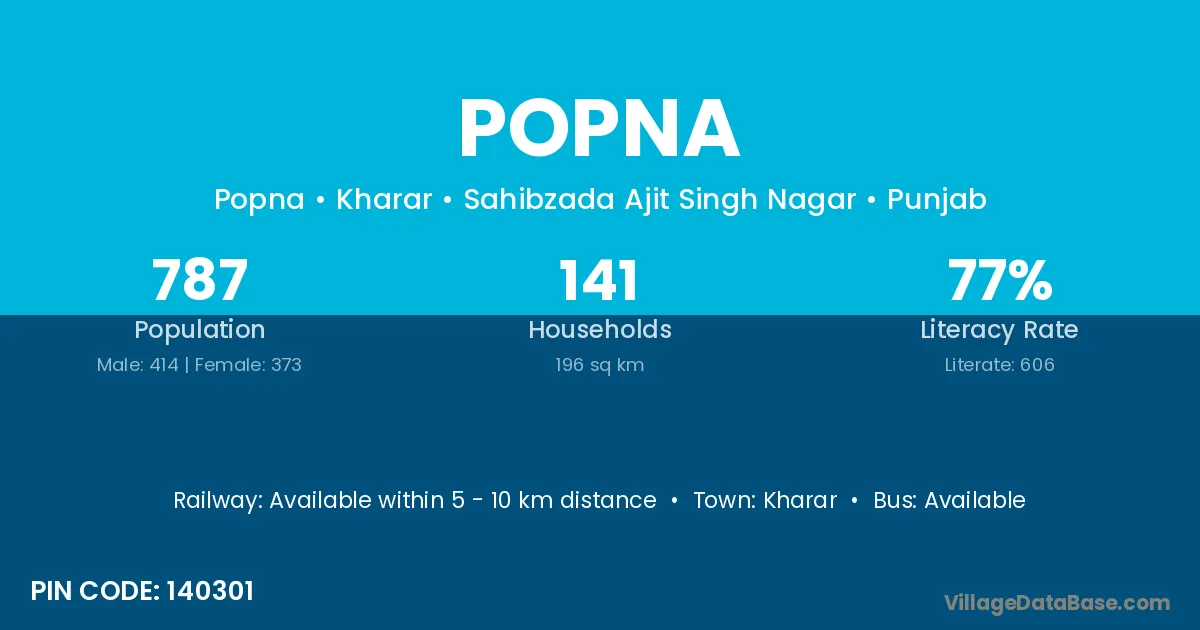 Kharar is the nearest town to Popna village for major economic activities