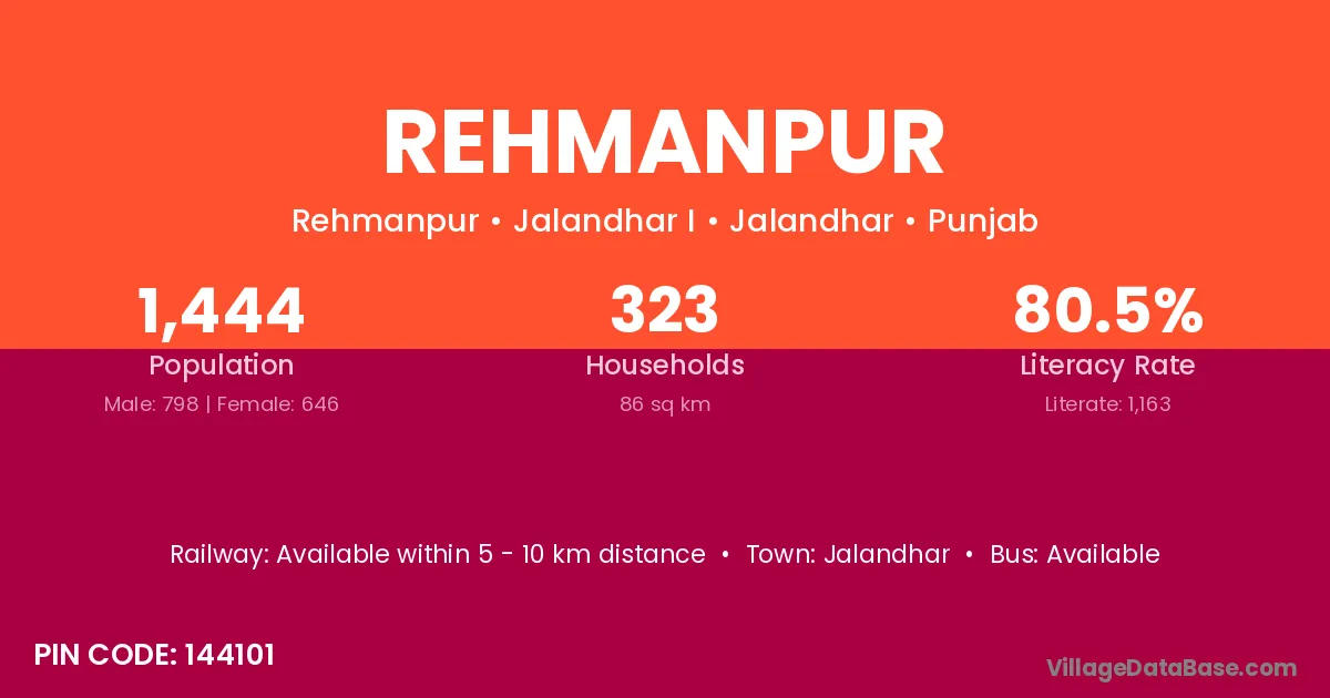 According to Census 2011 information, the village code of Rehmanpur village is 140301.