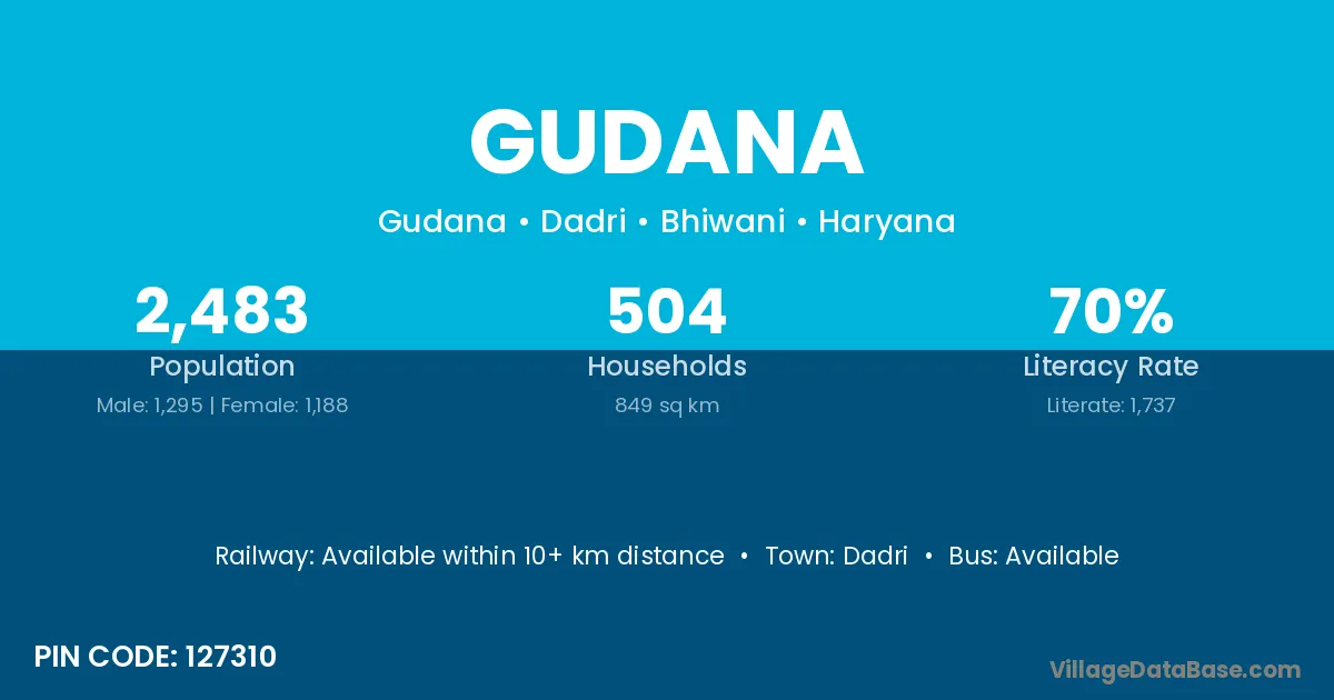 Gudana village has a total population of 1,357 people, of which 726 are males and 631 are females.