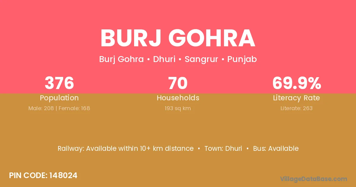 Dhuri is the nearest town to Burj Gohra village for major economic activities