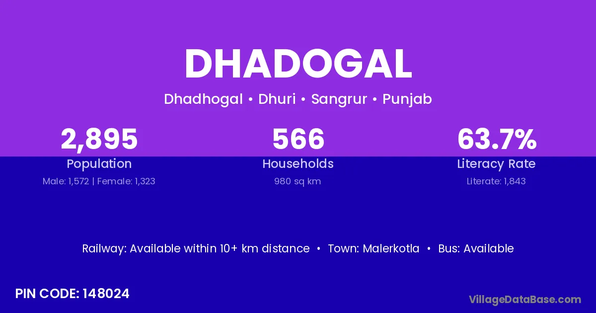 Malerkotla is the nearest town to Dhadogal village for major economic activities