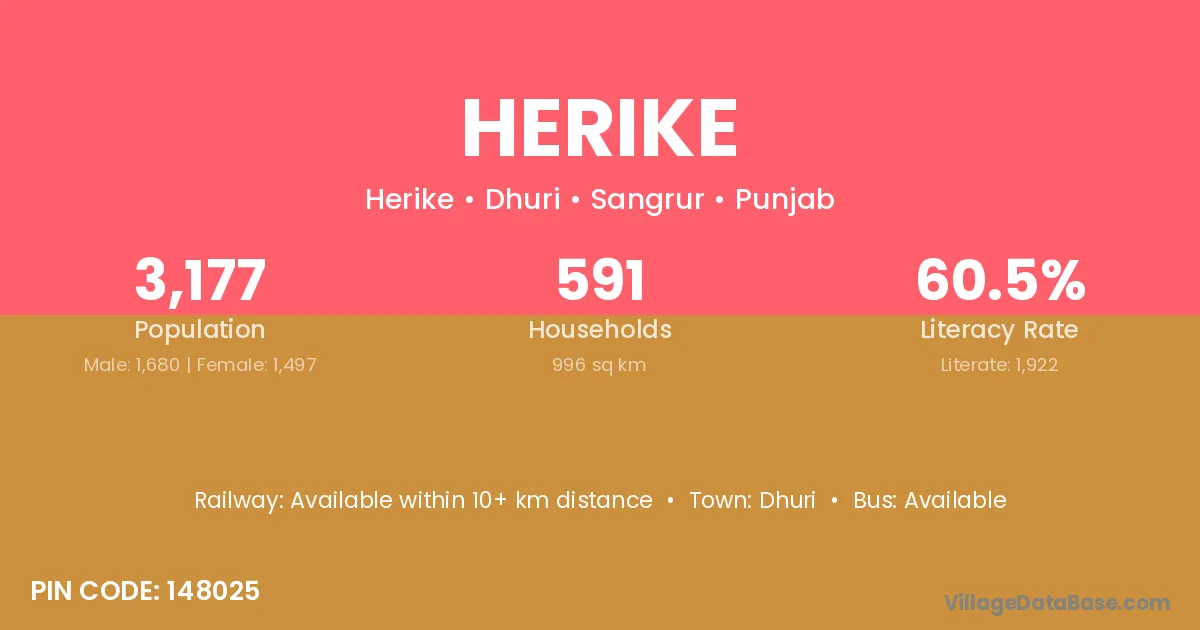 Herike village is located in the Dhuri Tehsil of the Sangrur district in Punjab .