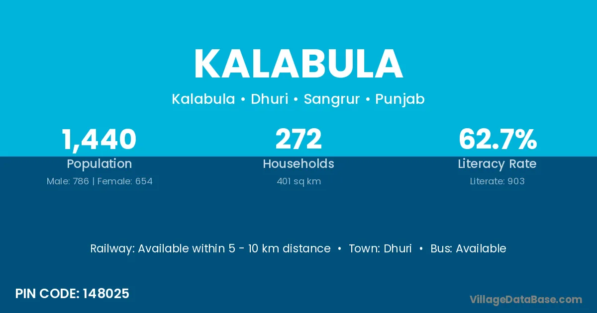 Dhuri is the nearest town to Kalabula village for major economic activities