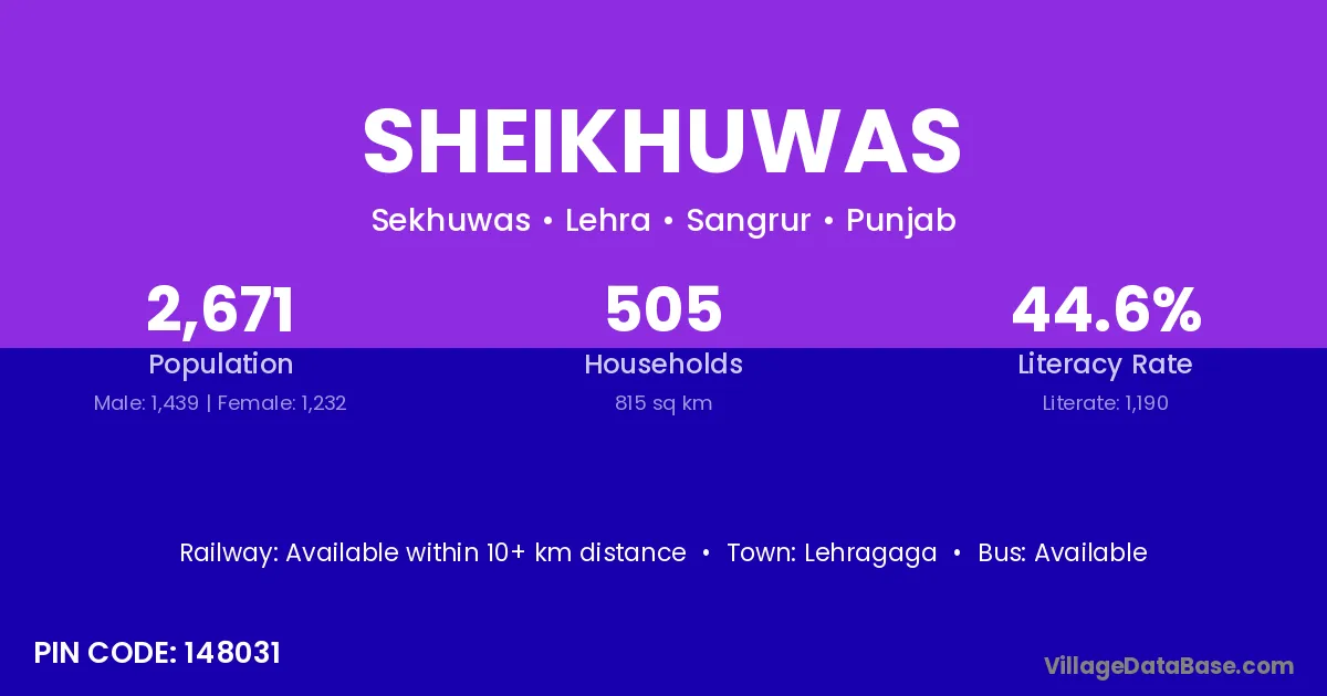 Lehragaga is the nearest town to Sheikhuwas village for major economic activities