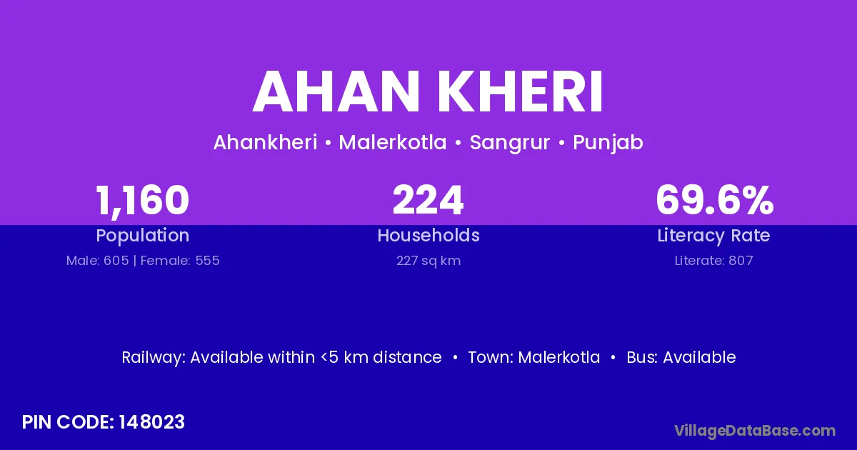 Malerkotla is the nearest town to Ahan Kheri village for major economic activities