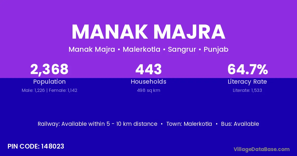 Malerkotla is the nearest town to Manak Majra village for major economic activities