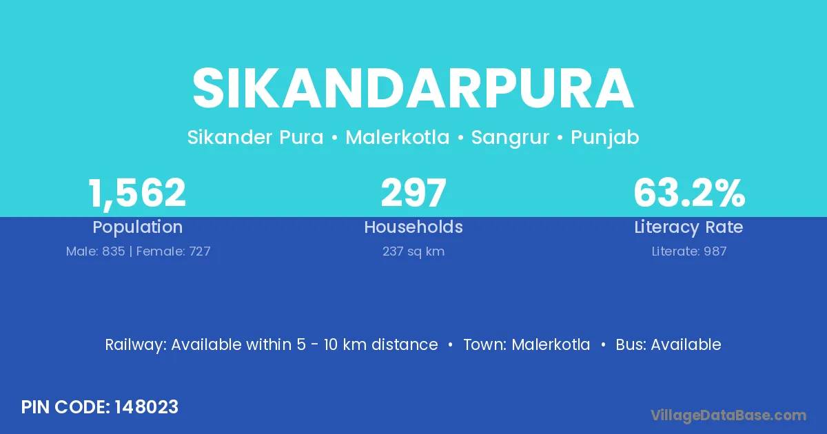 Malerkotla is the nearest town to Sikandarpura village for major economic activities