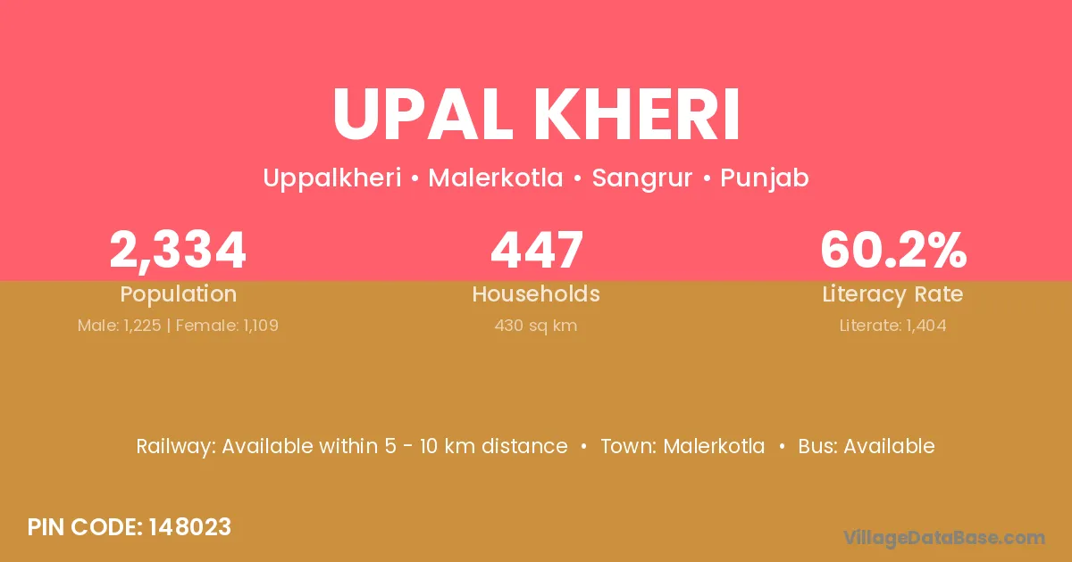 Malerkotla is the nearest town to Upal Kheri village for major economic activities