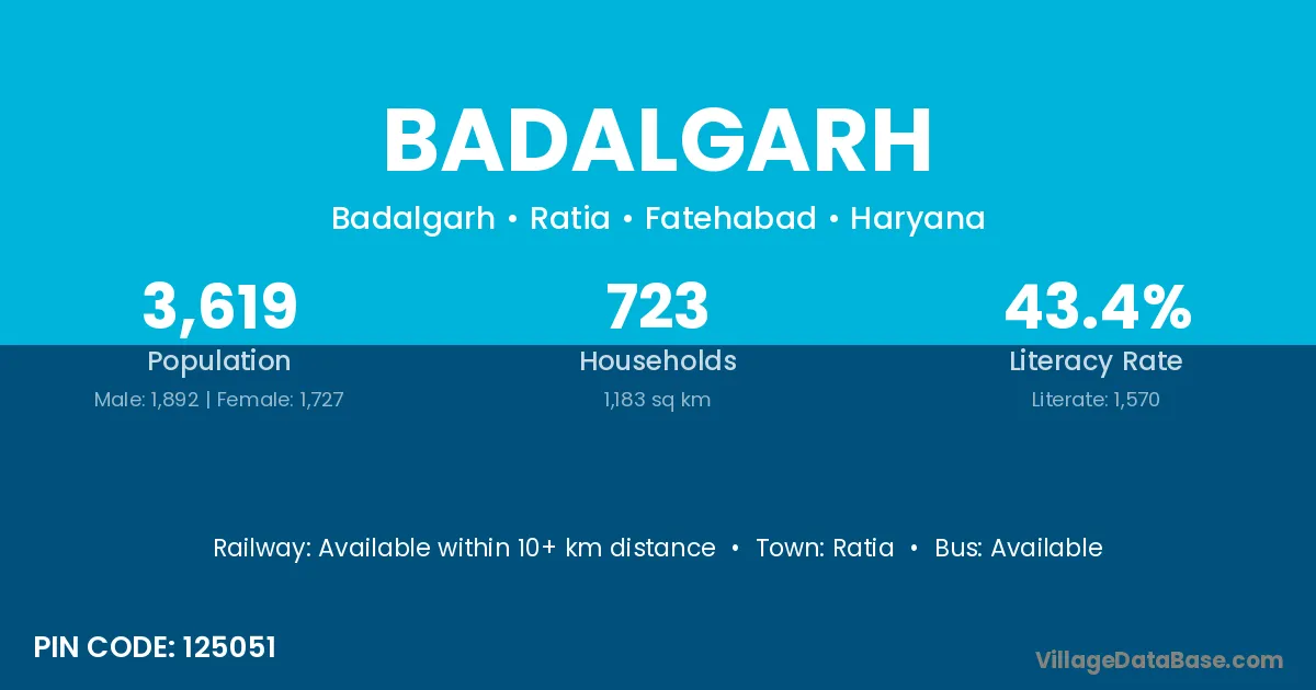 According to Census 2011 information, the village code of Badalgarh village is 148033.