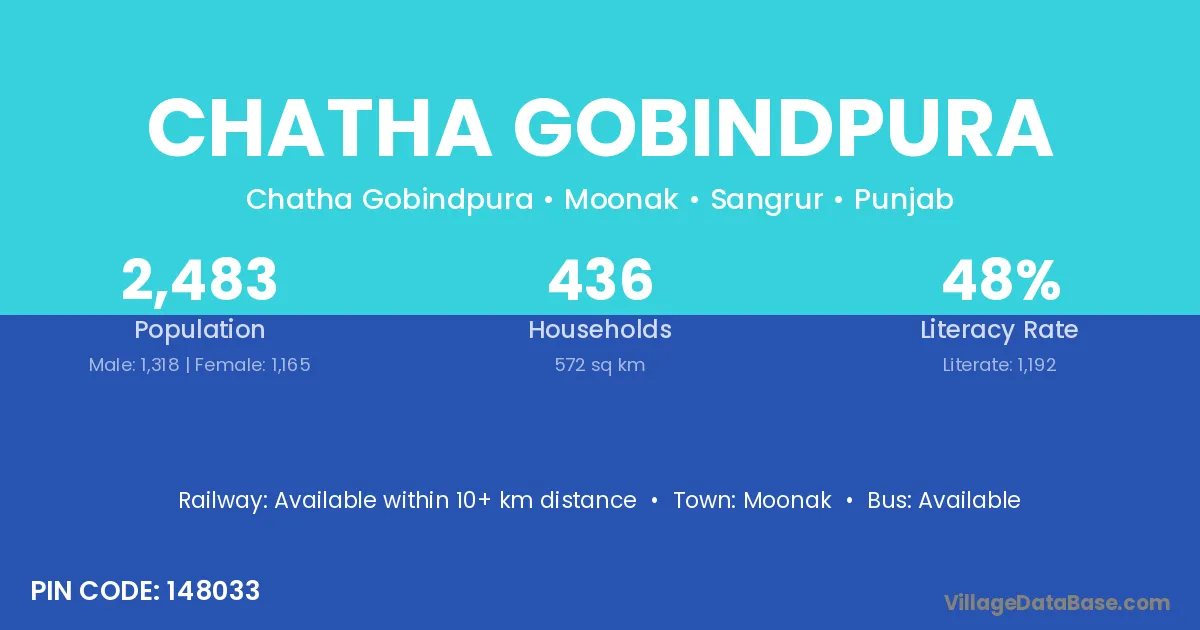 Moonak is the nearest town to Chatha Gobindpura village for major economic activities