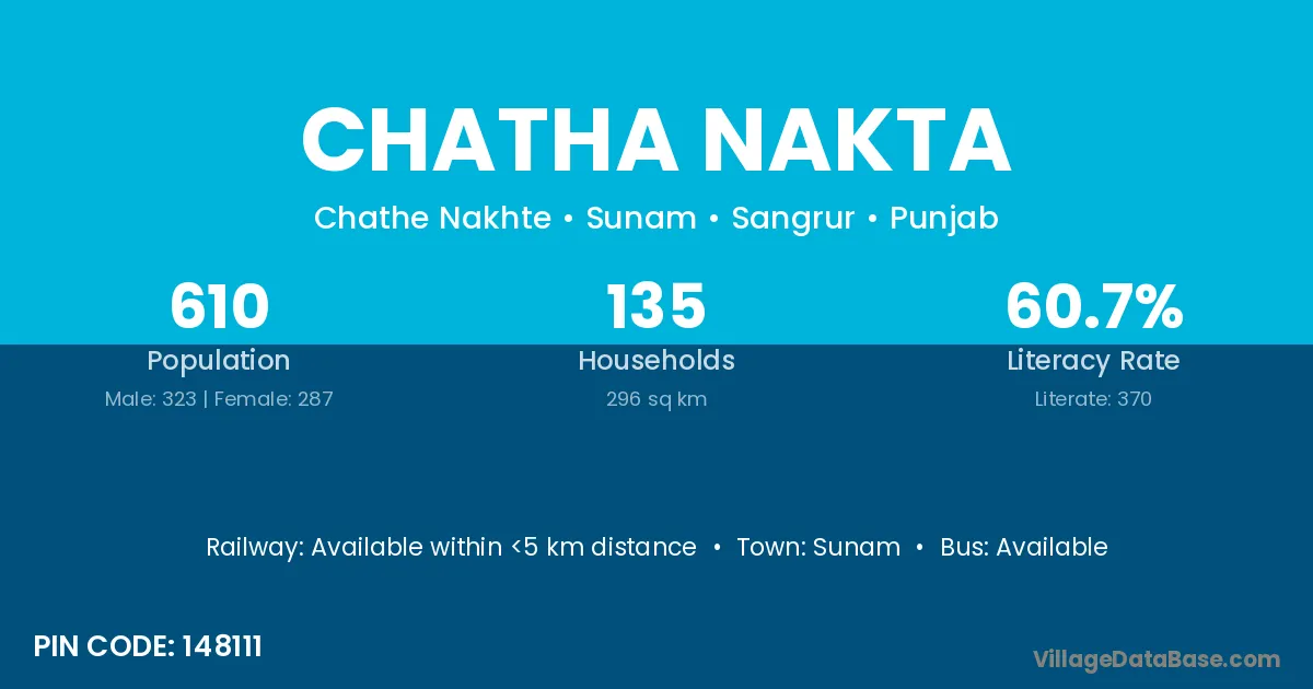 Sunam is the nearest town to Chatha Nakta village for major economic activities