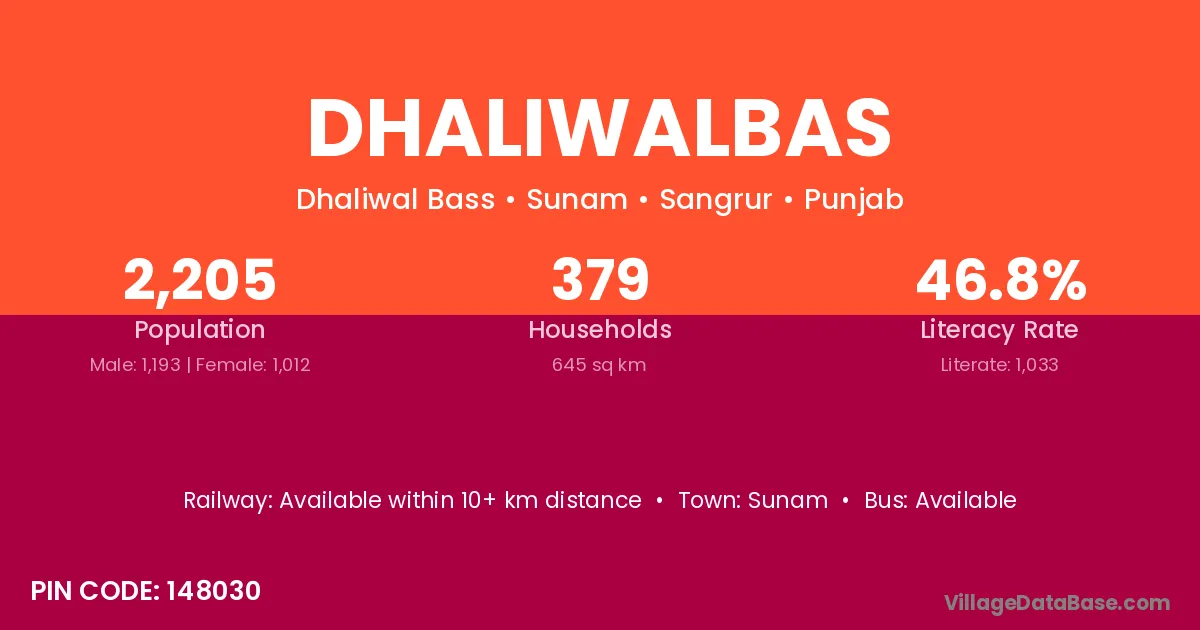 Dhaliwalbas village has a total population of 2,205 people, of which 1,193 are males and 1,012 are females.