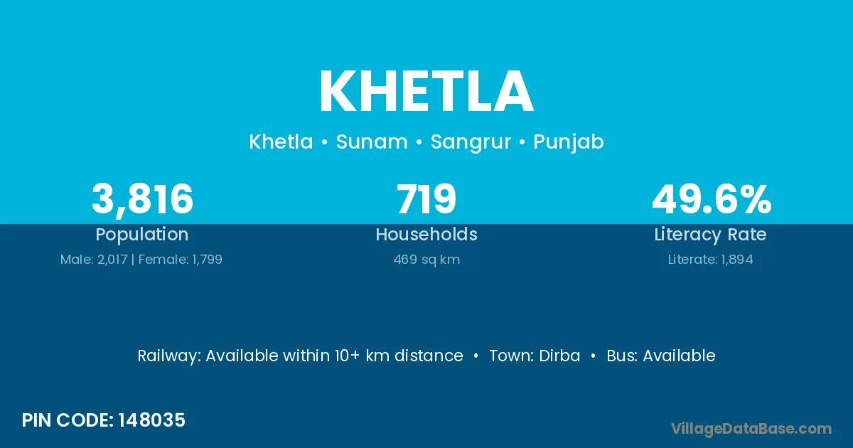 According to Census 2011 information, the village code of Khetla village is 148035.