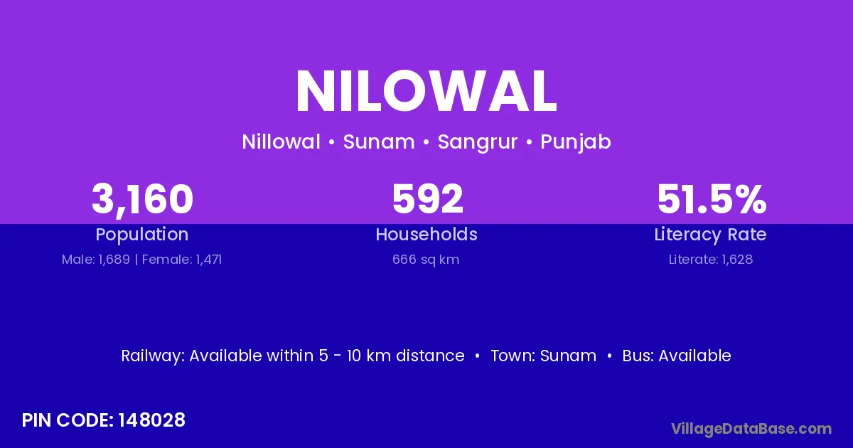 According to Census 2011 information, the village code of Nilowal village is 148028.