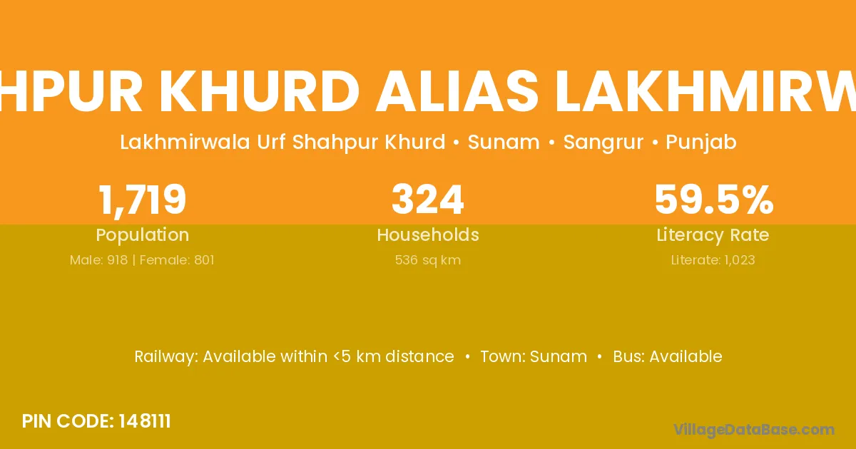 According to Census 2011 information, the village code of Shahpur Khurd Alias Lakhmirwala village is 148111.
