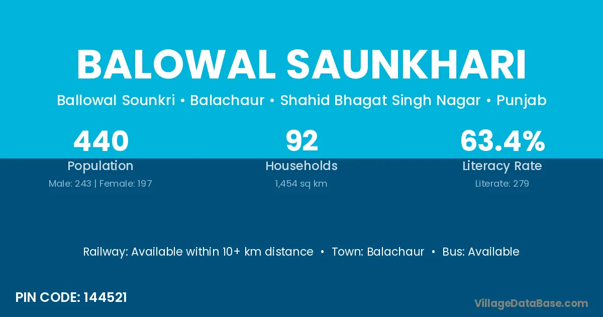 Balowal Saunkhari village has a total population of 440 people, of which 243 are males and 197 are females.