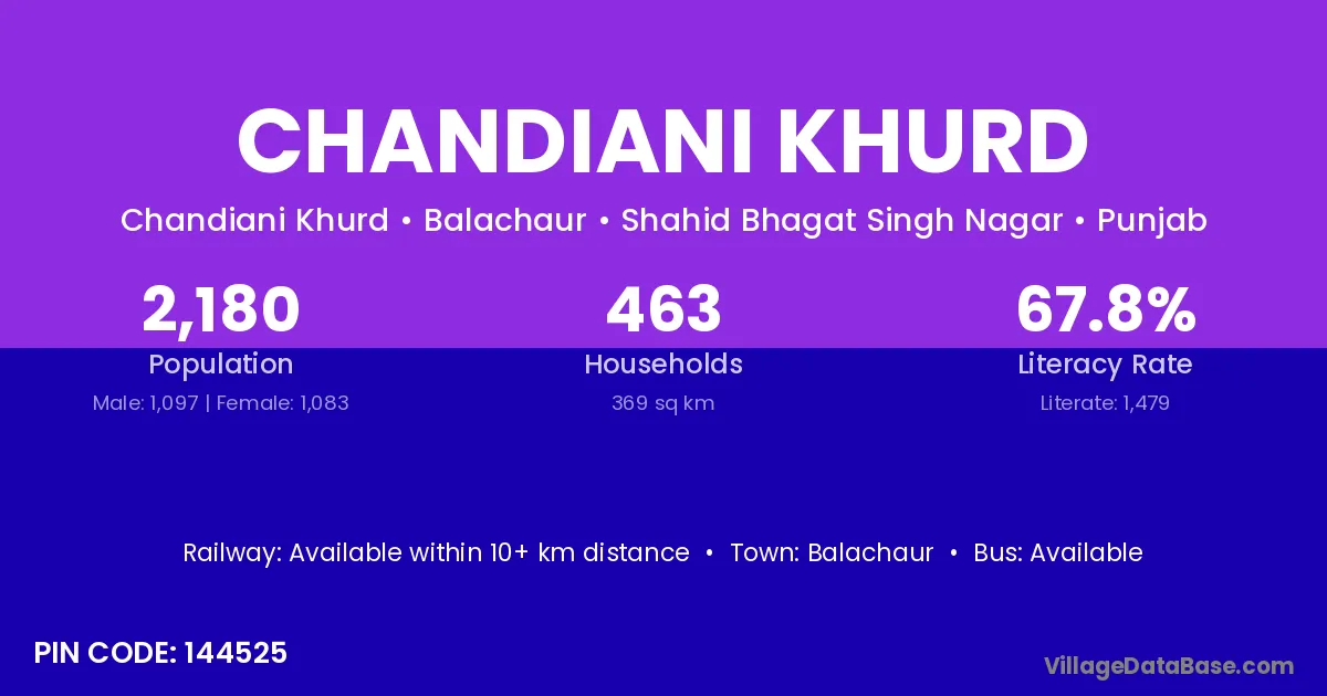 Balachaur is the nearest town to Chandiani Khurd village for major economic activities