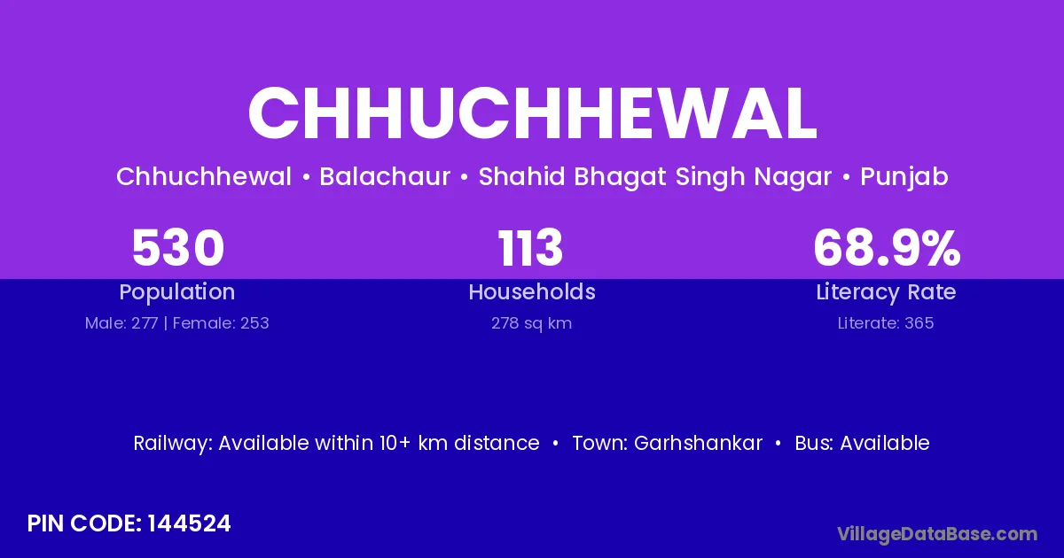 There are approximately 113 households in Chhuchhewal village.