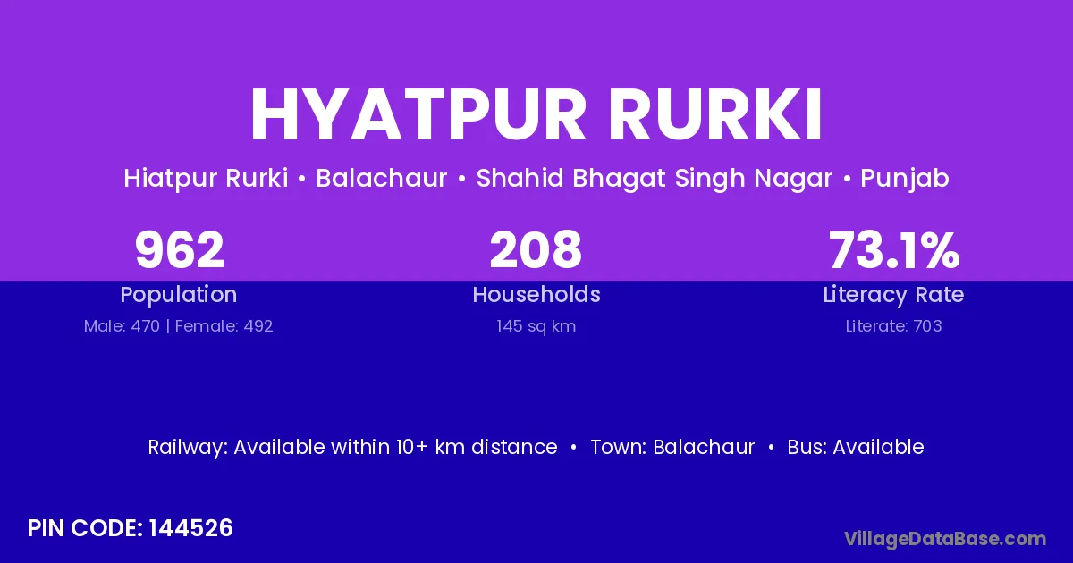 Balachaur is the nearest town to Hyatpur Rurki village for major economic activities