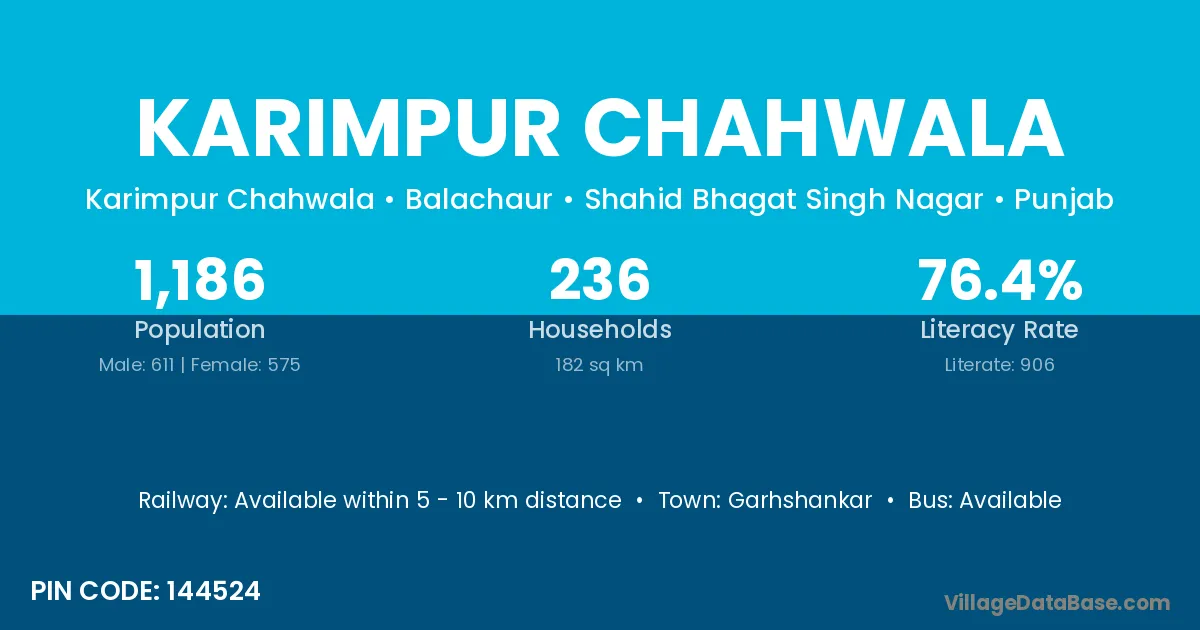 Garhshankar is the nearest town to Karimpur Chahwala village for major economic activities