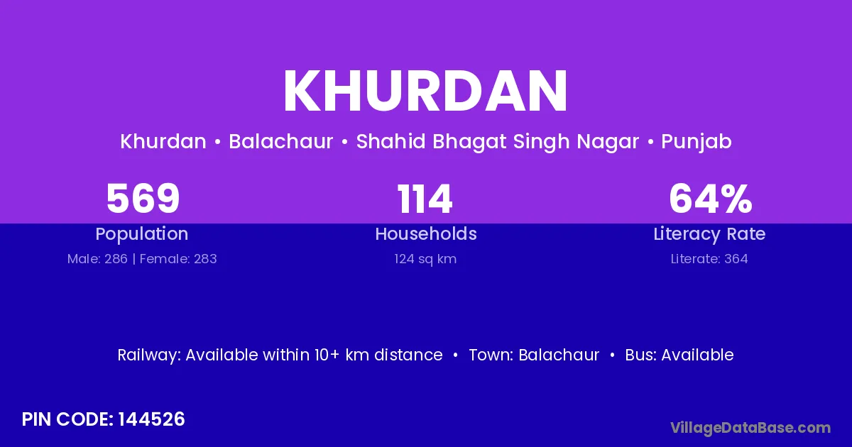 Balachaur is the nearest town to Khurdan village for major economic activities
