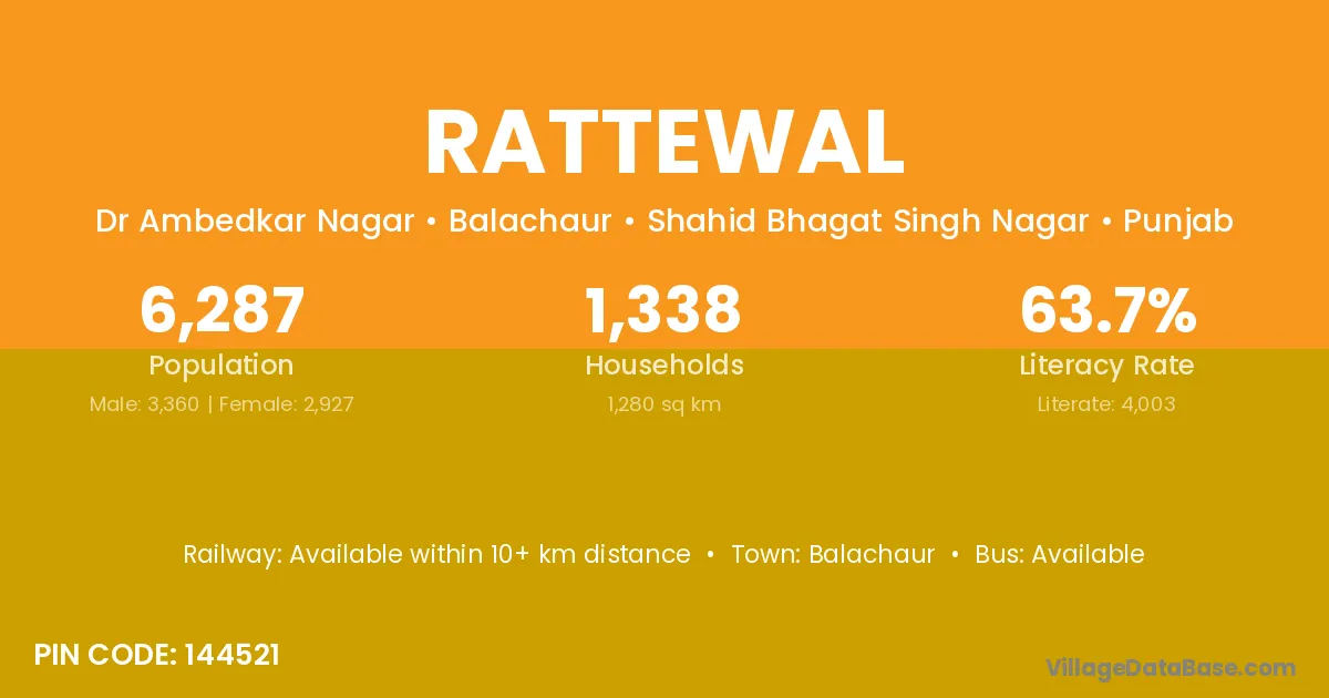 Balachaur is the nearest town to Rattewal village for major economic activities