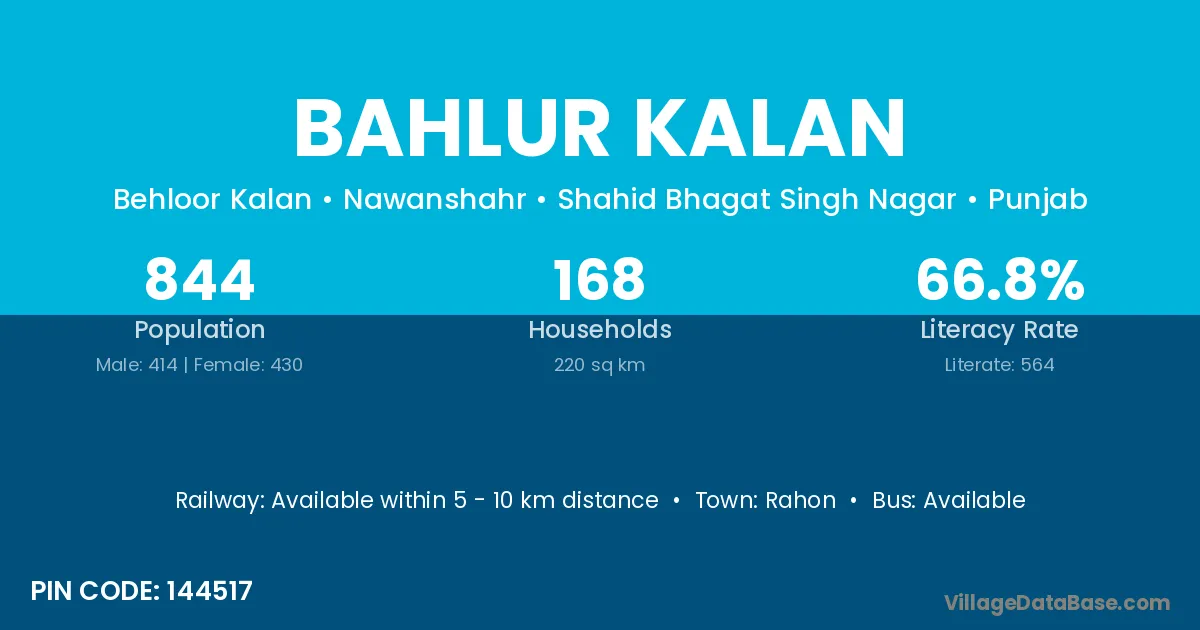 Rahon is the nearest town to Bahlur Kalan village for major economic activities