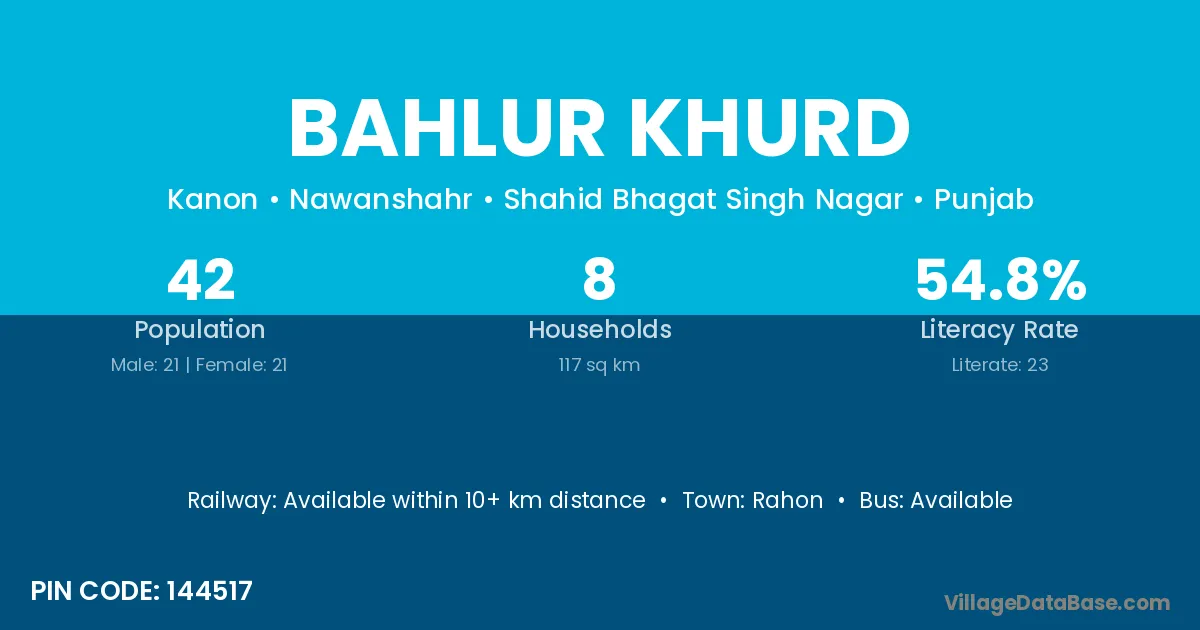 Bahlur Khurd village has a total population of 42 people, of which 21 are males and 21 are females.
