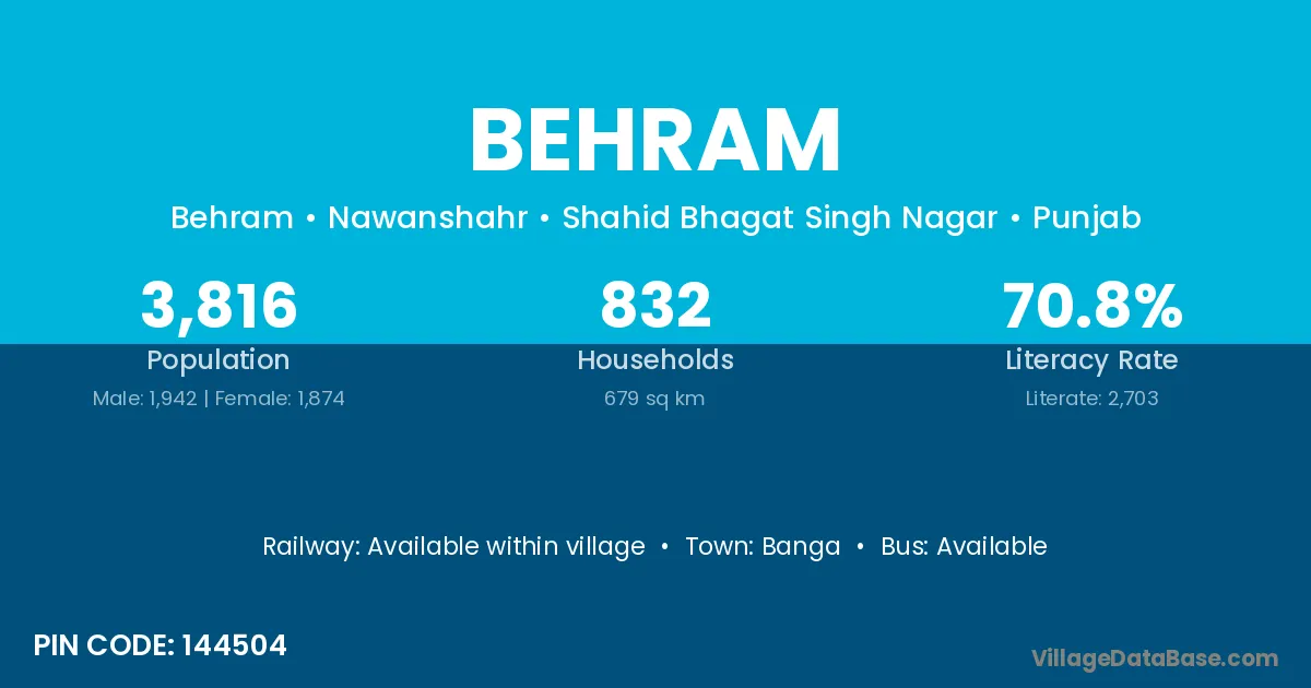 Behram village has a total population of 3,816 people, of which 1,942 are males and 1,874 are females.