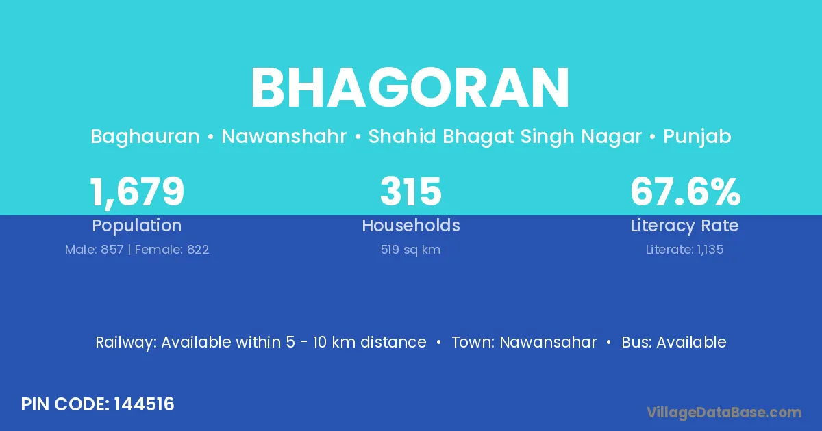 Nawansahar is the nearest town to Bhagoran village for major economic activities