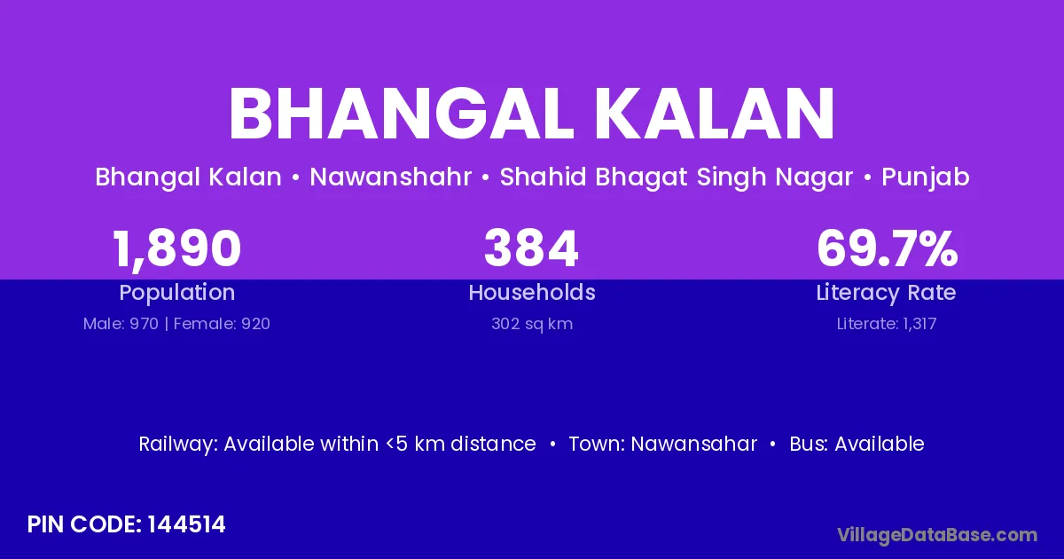 Nawansahar is the nearest town to Bhangal Kalan village for major economic activities